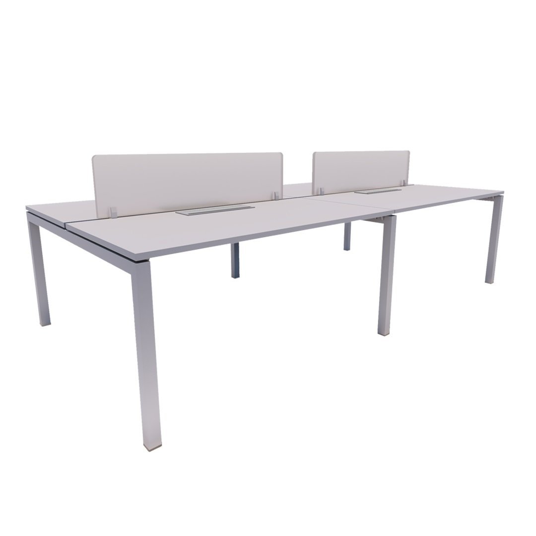 Cluster of 4 workstation comes with N shape leg base, hanging glass partition, and 4 unit 4 gang flipper box. It is office furniture that expresses space in a meticulous, creative and practical way.