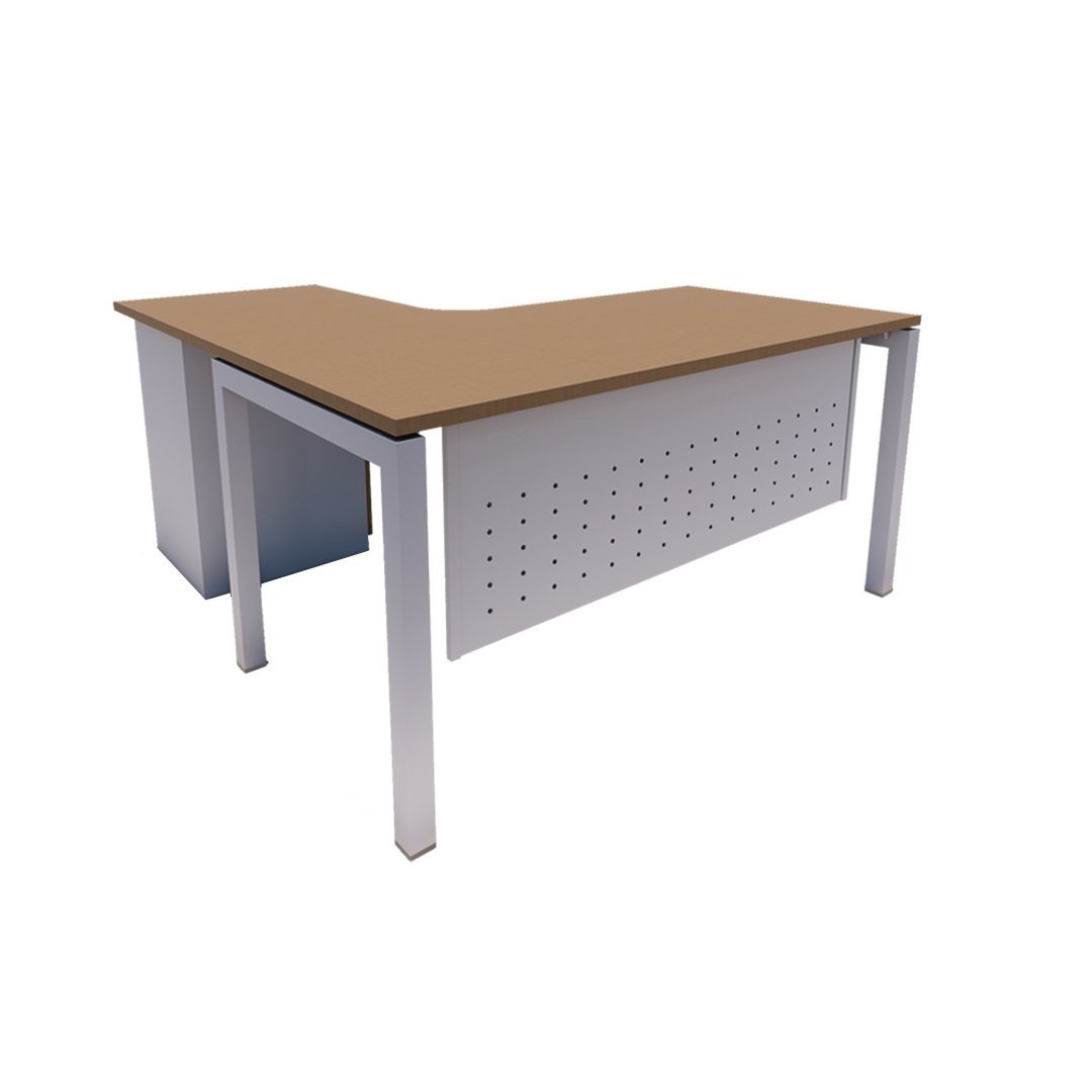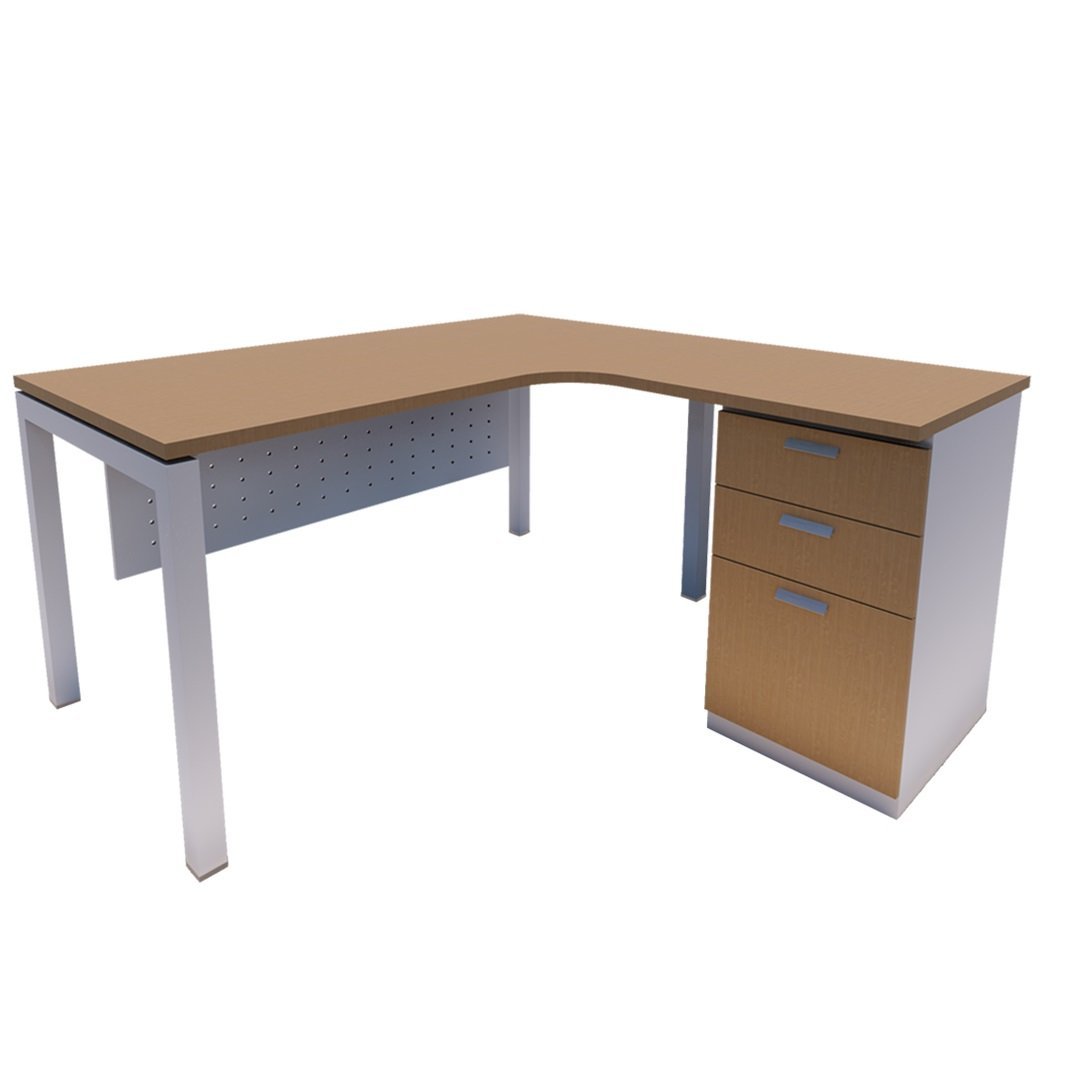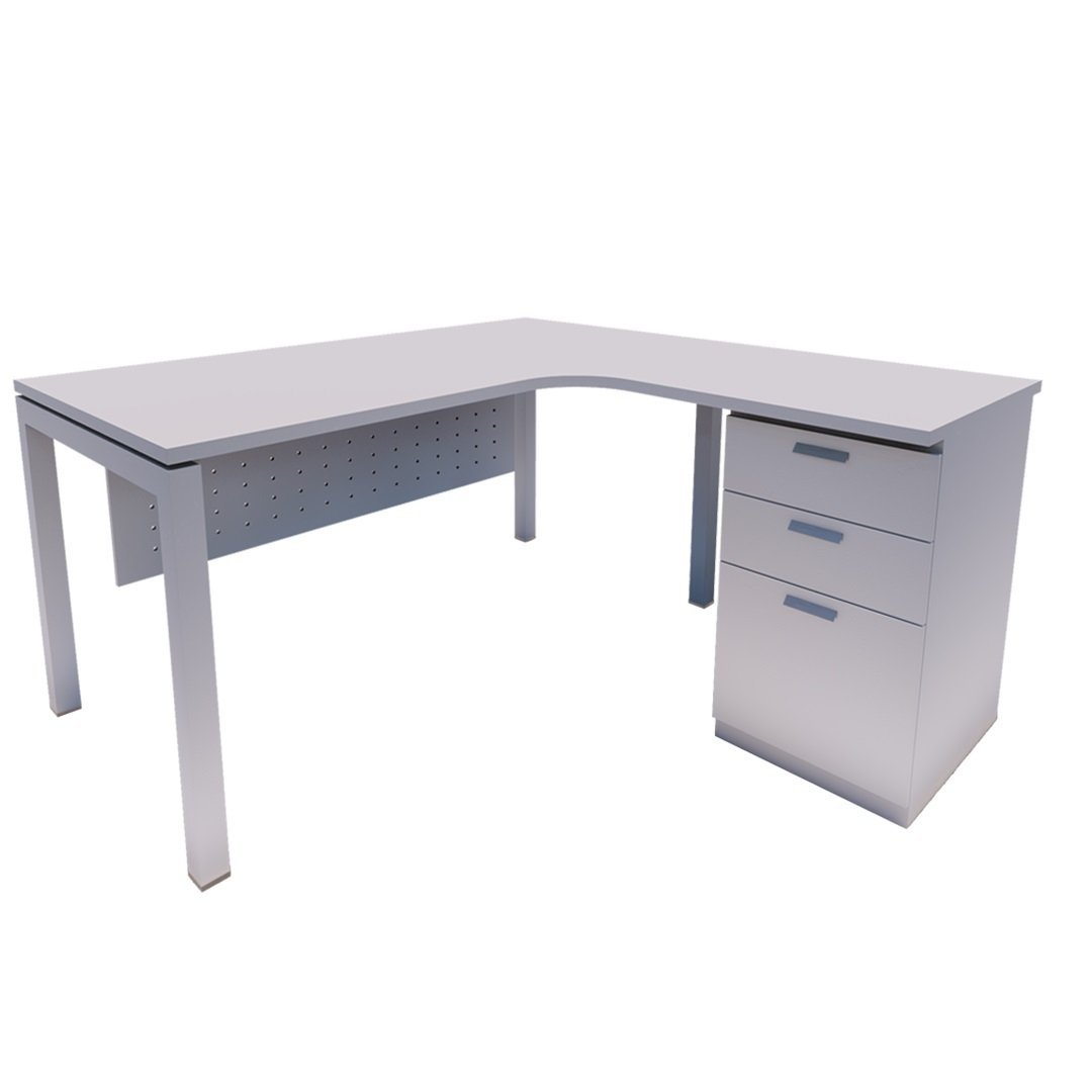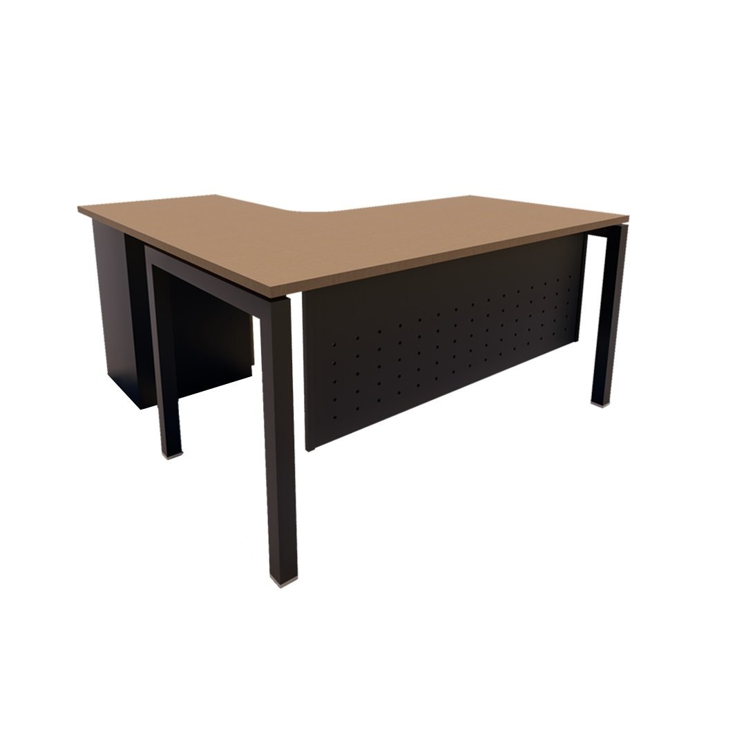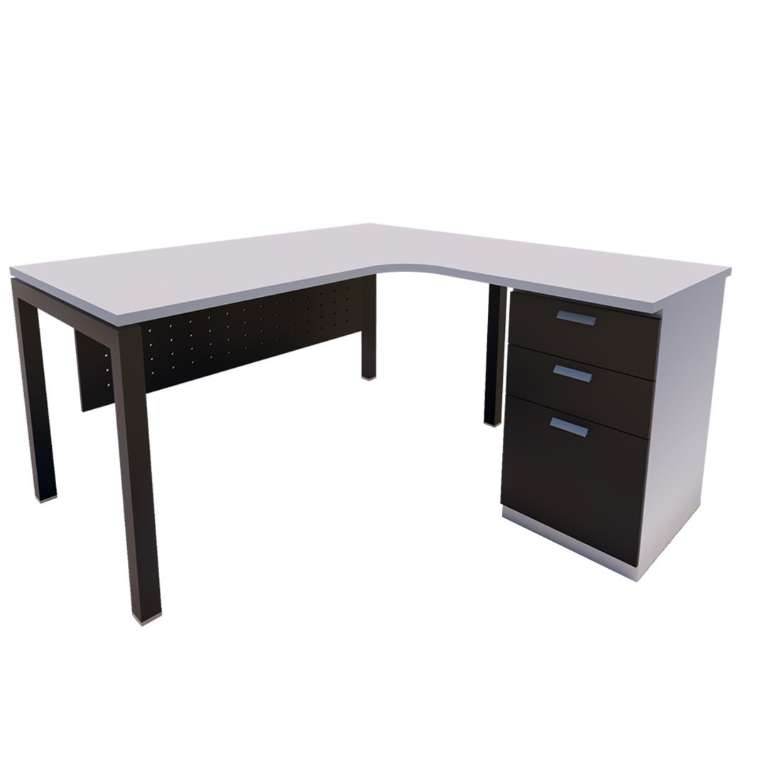 L-shape table comes with N shape leg base and fixed pedestal. If space is not an issue for you, the work area gained with this design is priceless.